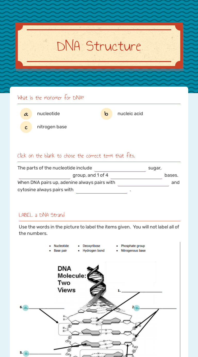 What do the letters dna stand for? **make sure that when you fill in an answer, you see it crossed out . Dna structure and function worksheet ap biology. Answer to solved dna structure worksheet 1 1. Should work with most biology textbooks.